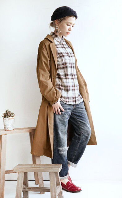 オンナノコがすっきり着られる、クセのないシンプルなシルエット。かさばりにくいので、インに着たりさらりと羽織ったり…着回し力も抜群です!柔らかくほっこり起毛感のあるフランネル生地は、秋冬コーデに無くてはならないアイテムです!
